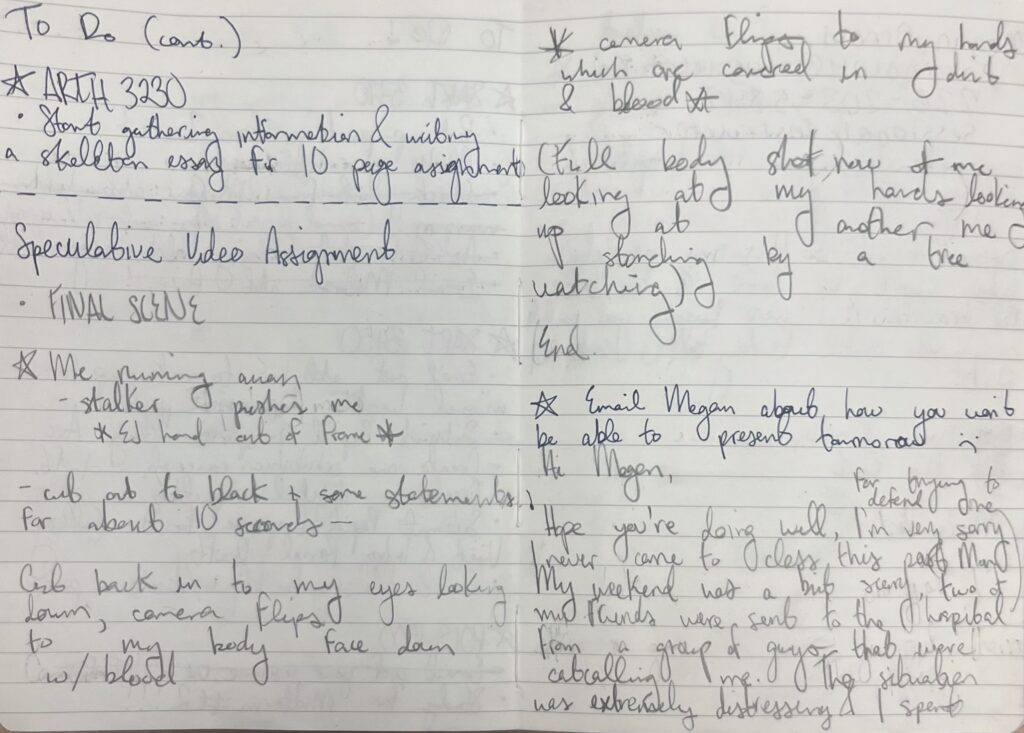 The idea at it’s base is me stalking me, except “stalker” me is a digitally rendered AI model, kind of like how those online disfigure and change themselves to fit the socially accepted beauty standard; except my form will be everchanging and not-human at all times. I really want the film to be seen as something like “found footage” like the Blair Witch Project, or Incantation.